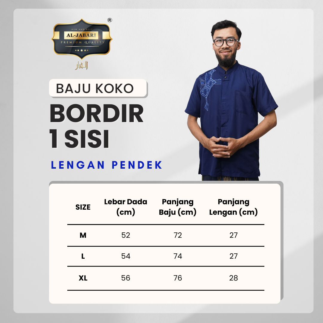 Al Jabari - Baju Koko Pria Dewasa Bordir 1 Sisi Lengan Pendek Katun Premium Diamond