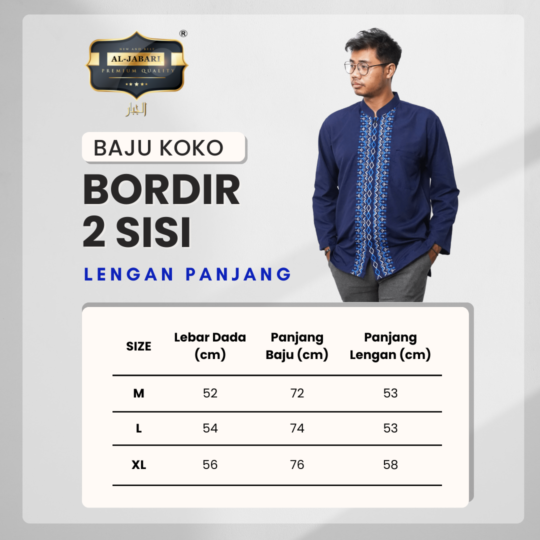 Al Jabari - Baju Koko Pria Dewasa Bordir 2 Sisi Lengan Panjang Katun Premium Universal