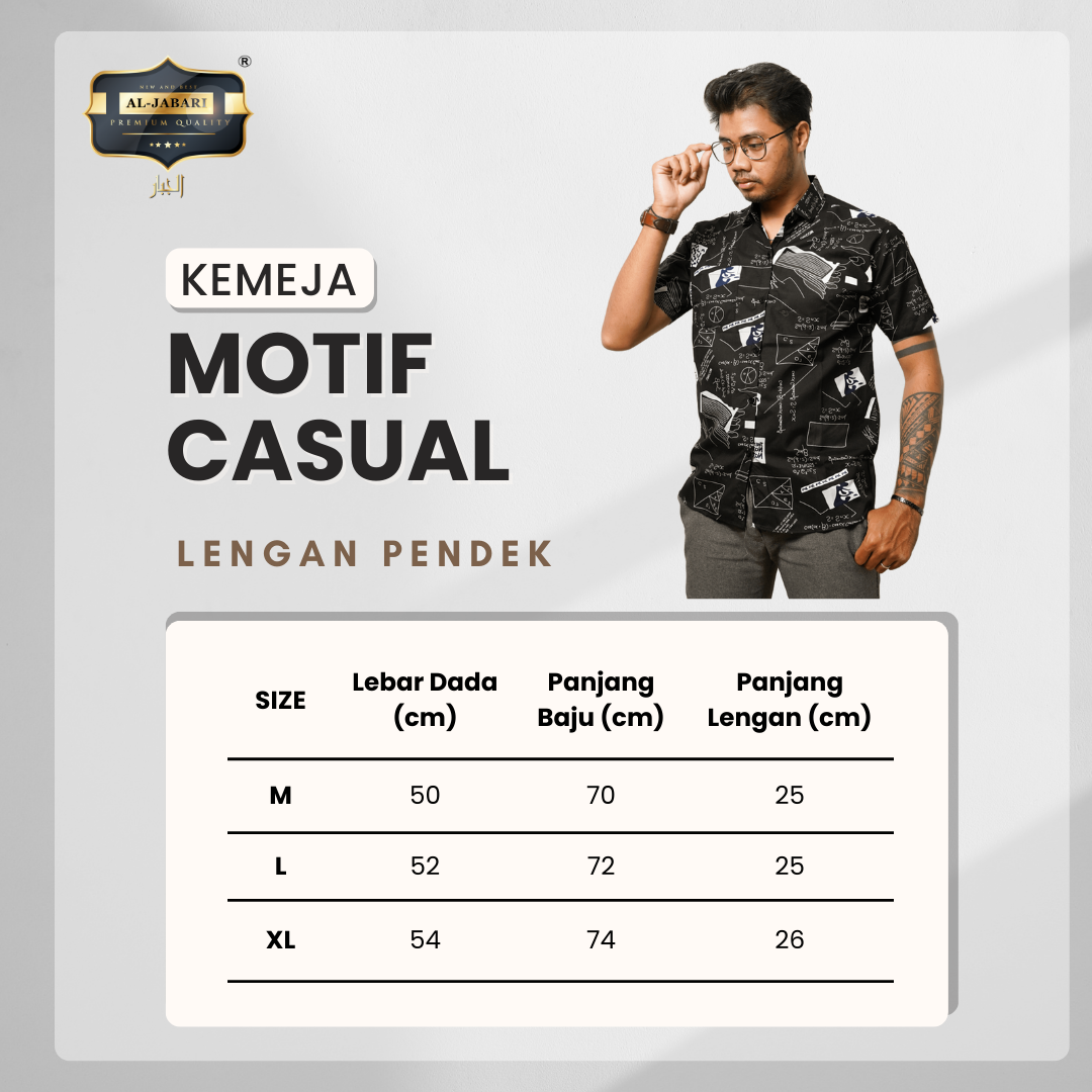 Al Jabari - Kemeja Pria Motif Casual Katun Microtex Lengan Pendek Slim Fit